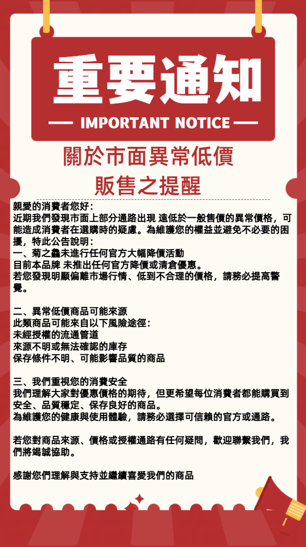 【重要公告】關於市面異常低價販售之提醒